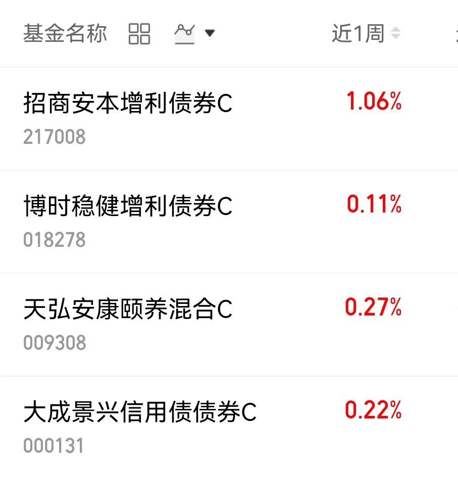 今日债市行情继续带来稳定回暖趋势,国债期货目前集体上涨,双债盘面涨幅不错,近期权益市场也涨幅出色,在这种行情下,混债近一周的表现都很亮眼,一起来看具体情况: