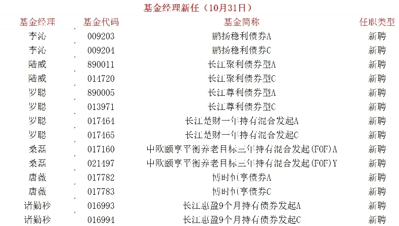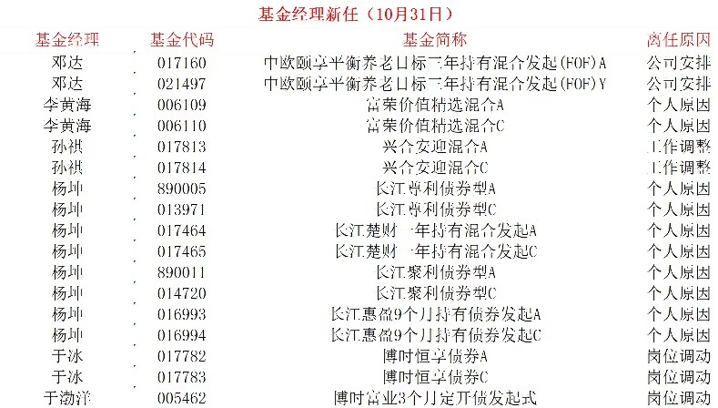 10月31日基金经理变更公告
