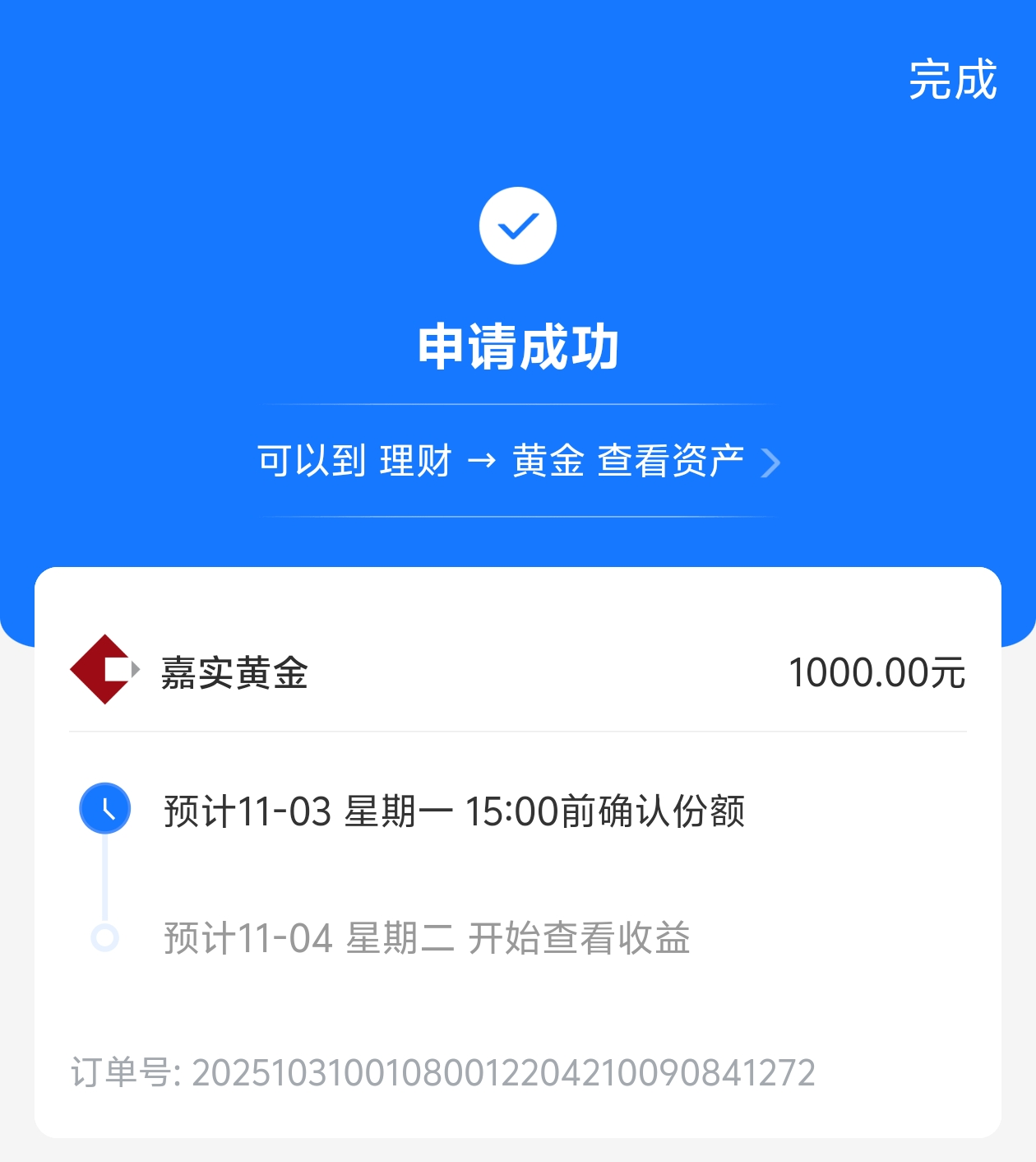 最近发现金价和市场波动常呈现负相关,尤其在行情震荡时更明显。$嘉实上海金ETF发起联接C$ 在近期调整中表现得相当平稳,这种抗跌性让人印象深刻。随着美联储政策路径逐渐清晰,黄金的配置意义正在提升。我准备用定期投入的方式参与,今天加仓1000元,既能分散风险,又不会错过可能的机会。低成本的持有优势,让长期布局更可持续,也悄悄减轻了心理负担。