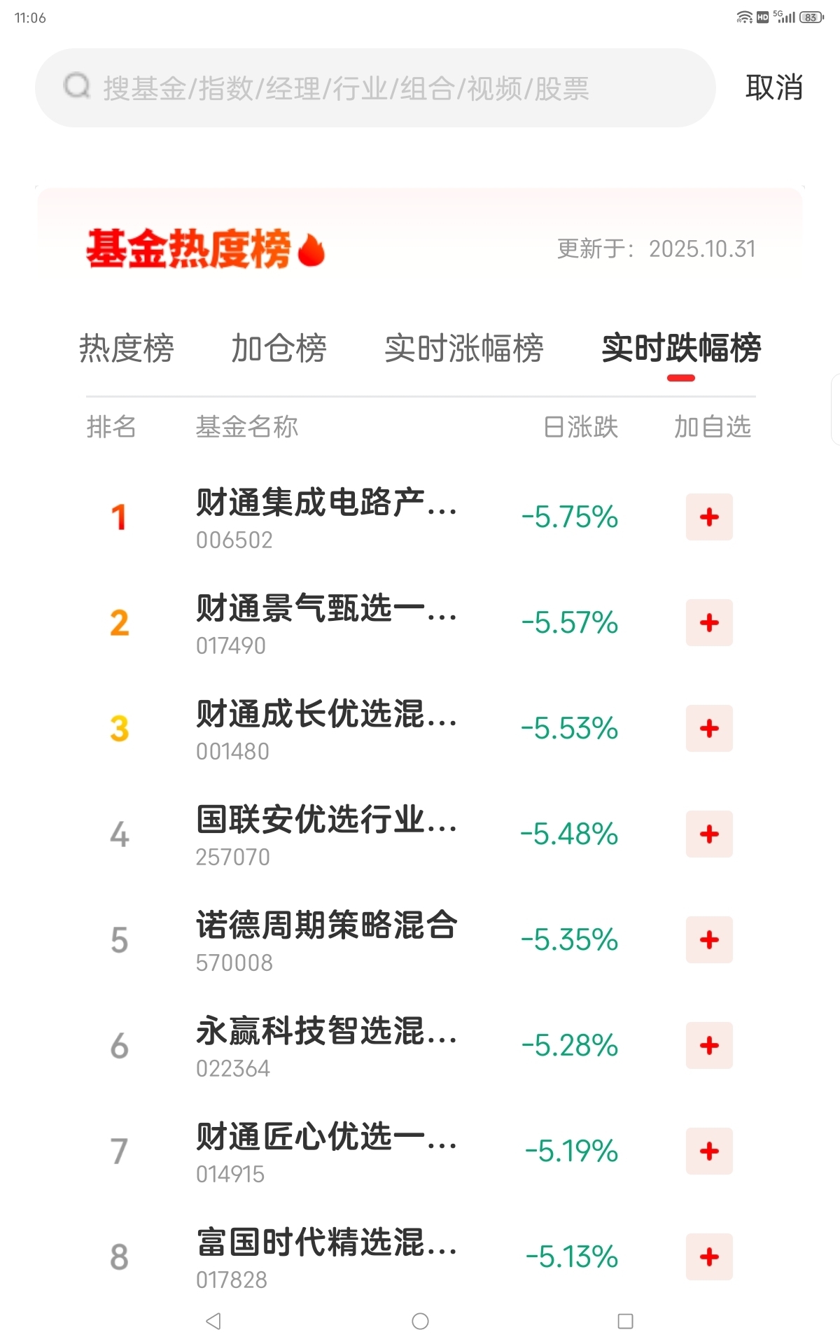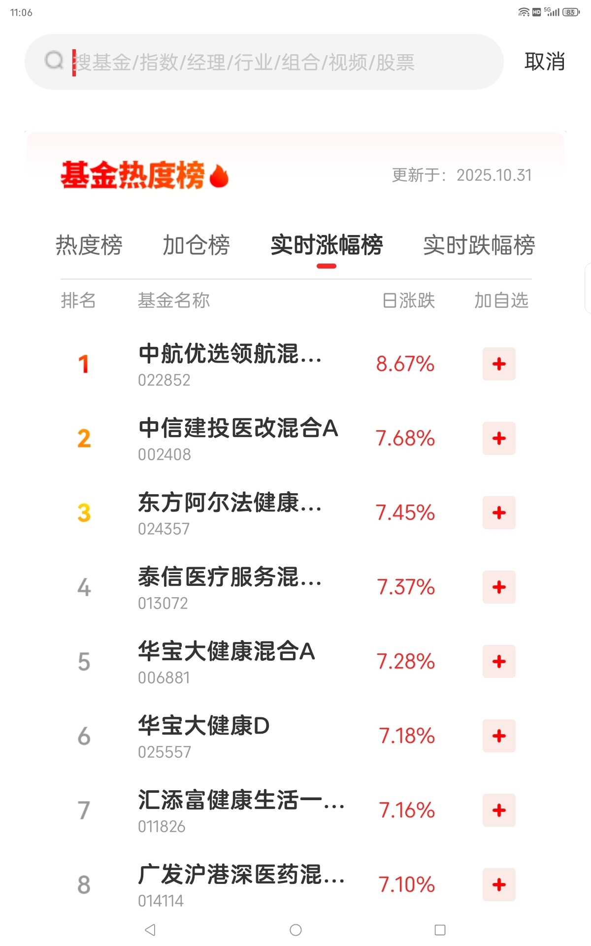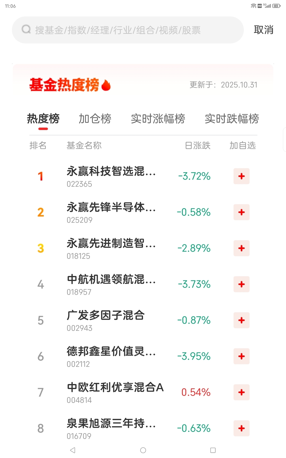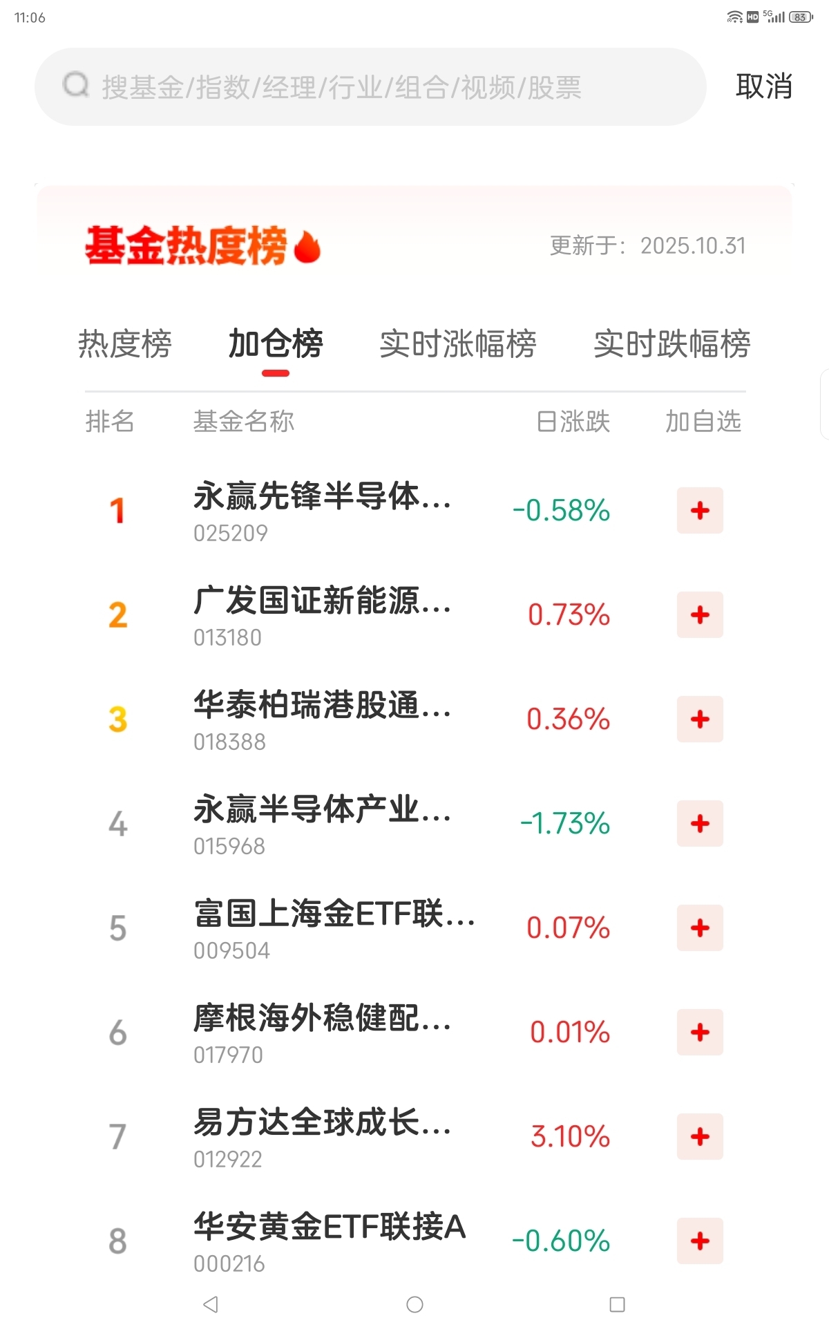 10月31日基金热度榜,加仓榜,实时涨跌幅榜