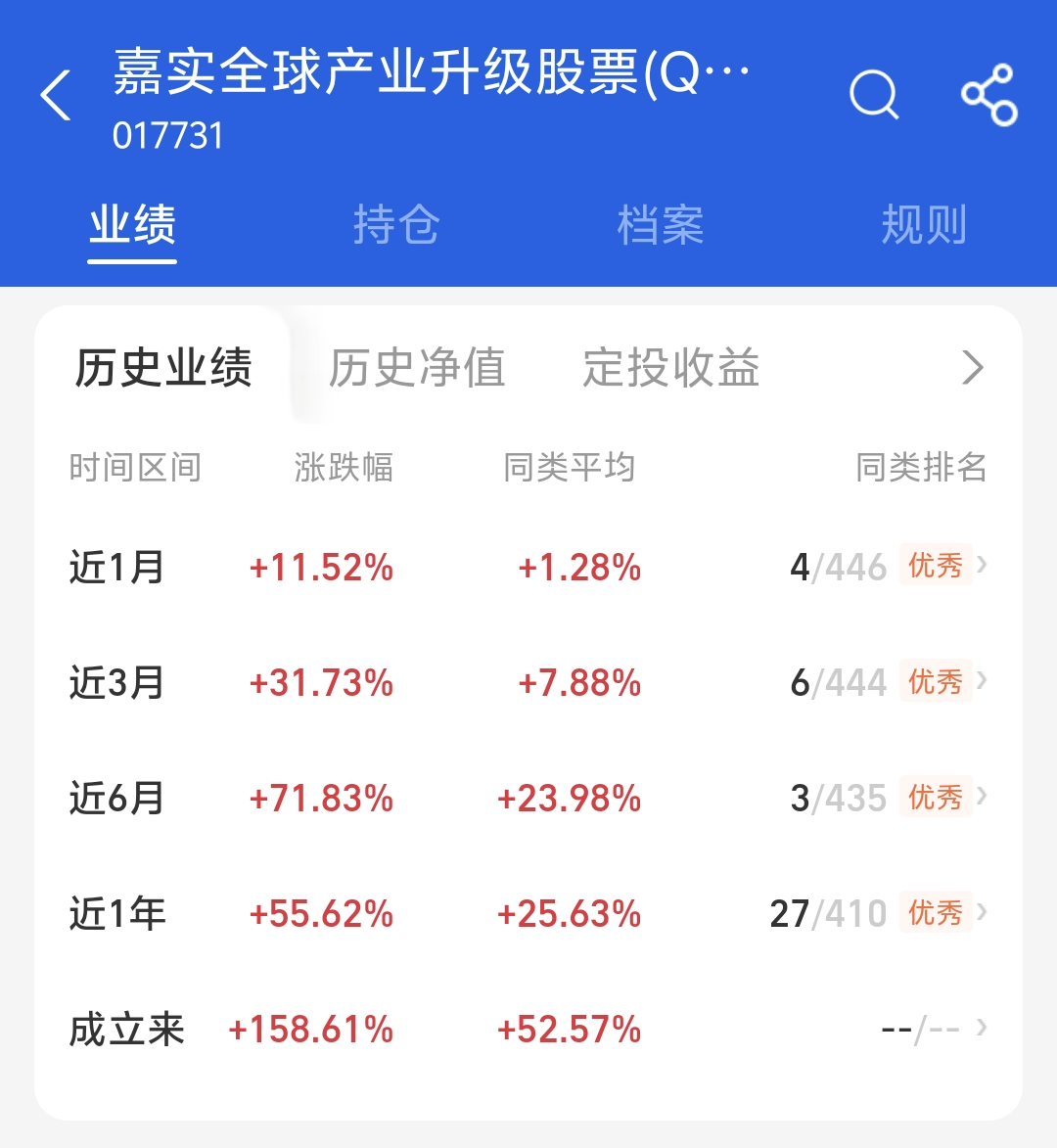 科技创新正在从单点突破走向系统化发展,这让我更加关注$嘉实全球产业升级股票发起式(QDII)C$ 的投资价值。产品不仅聚焦明星科技企业,也布局那些通过技术改造提升效率的传统行业公司。比如智能制造领域的工业机器人、医疗行业的数字诊断工具等,这些细分方向都展现出良好的成长性。这种既专注新兴科技、又不忽视传统产业升级的投资哲学,既贴合行业发展逻辑,也让我对产品的长期表现抱有期待。