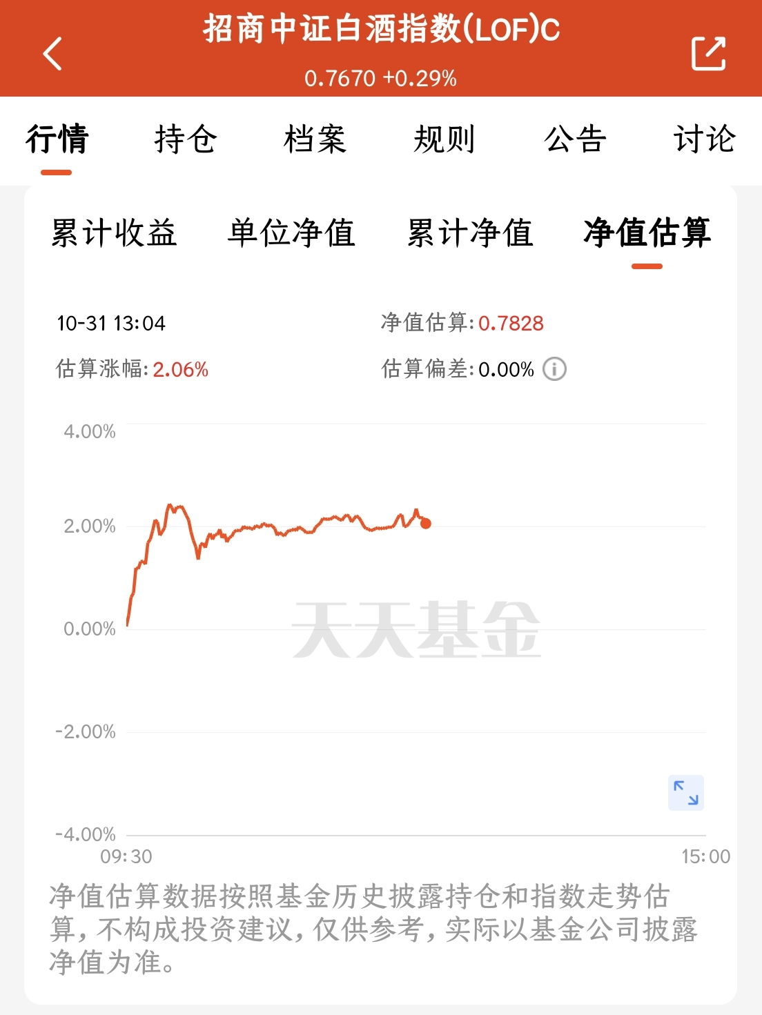 今天大盘调整,白酒板块逆势上涨令人眼前一亮。双节期间消费需求升温仍是确定性支撑,随着节日临近,看看白酒赛道能否接力补涨值。当前白酒板块低位正是分批入场时机,我倾向选择$招商中证白酒指数(LOF)A(OTCFUND|161725)$这类指数产品分散布局,该基今日估值上涨不少。在板块轮动加剧的背景下,白酒作为消费压舱石,其估值修复空间与业绩弹性可能成为后市亮点。