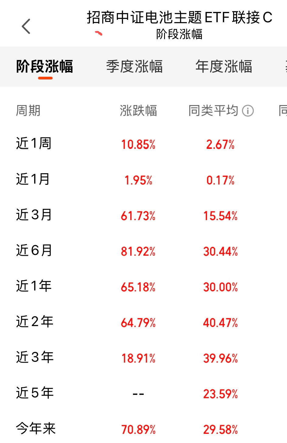宝子们,今天大科技集体下挫,电池板块抗住了,真的给力!工信部明确将全固态电池列为新一代电池研发重点,再加上锂电材料价格全面上涨,技术突破、需求激增、产业链景气及政策支持,共同推动电池板块进入上行通道,$招商中证电池主题ETF联接C(OTCFUND|016020)$近三月61.73%,今年以来70.89%,表现不错,虽然接下来科技是主线,但我认为电池的行情不会结束,继续看好!