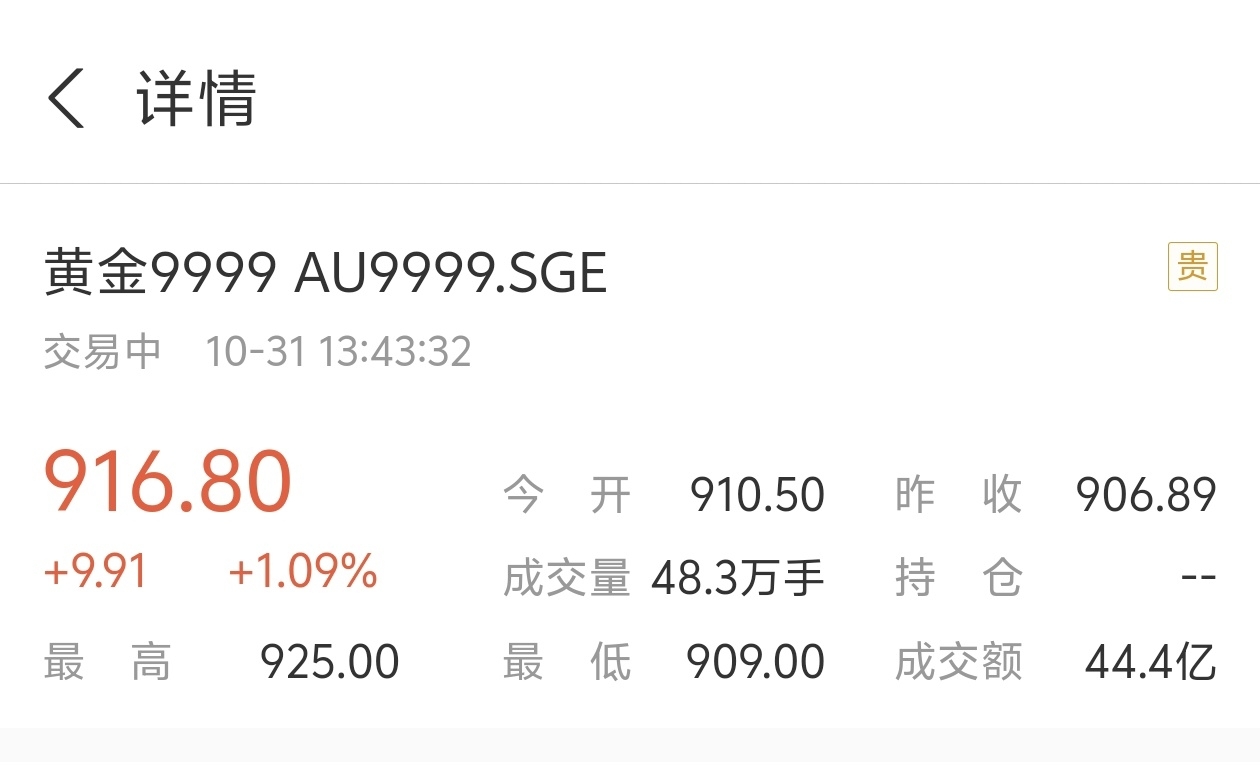 太强了呀,小伙伴们,今天黄金迎来了全面的反攻号角。目前上涨了1.09%,在916.8的位置。目前的估值也偏低,配置价值凸显!