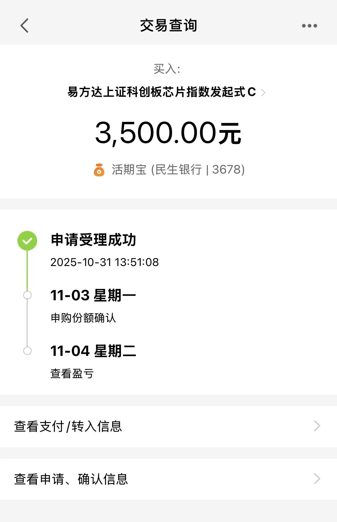 $博时上证科创板芯片ETF发起式联接C(OTCFUND|022726)$这也是科创芯片基,加入自选了。$永赢科技智选混合发起C(OTCFUND|022365)$cpo今天调整,永赢跌了6个点,再等等,我会买进去。
