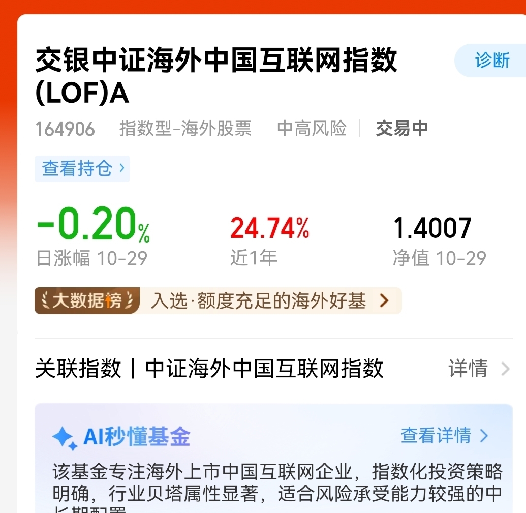 交银海外互联网指数基经得起波动,现在回调是机会,坚定持有没错!