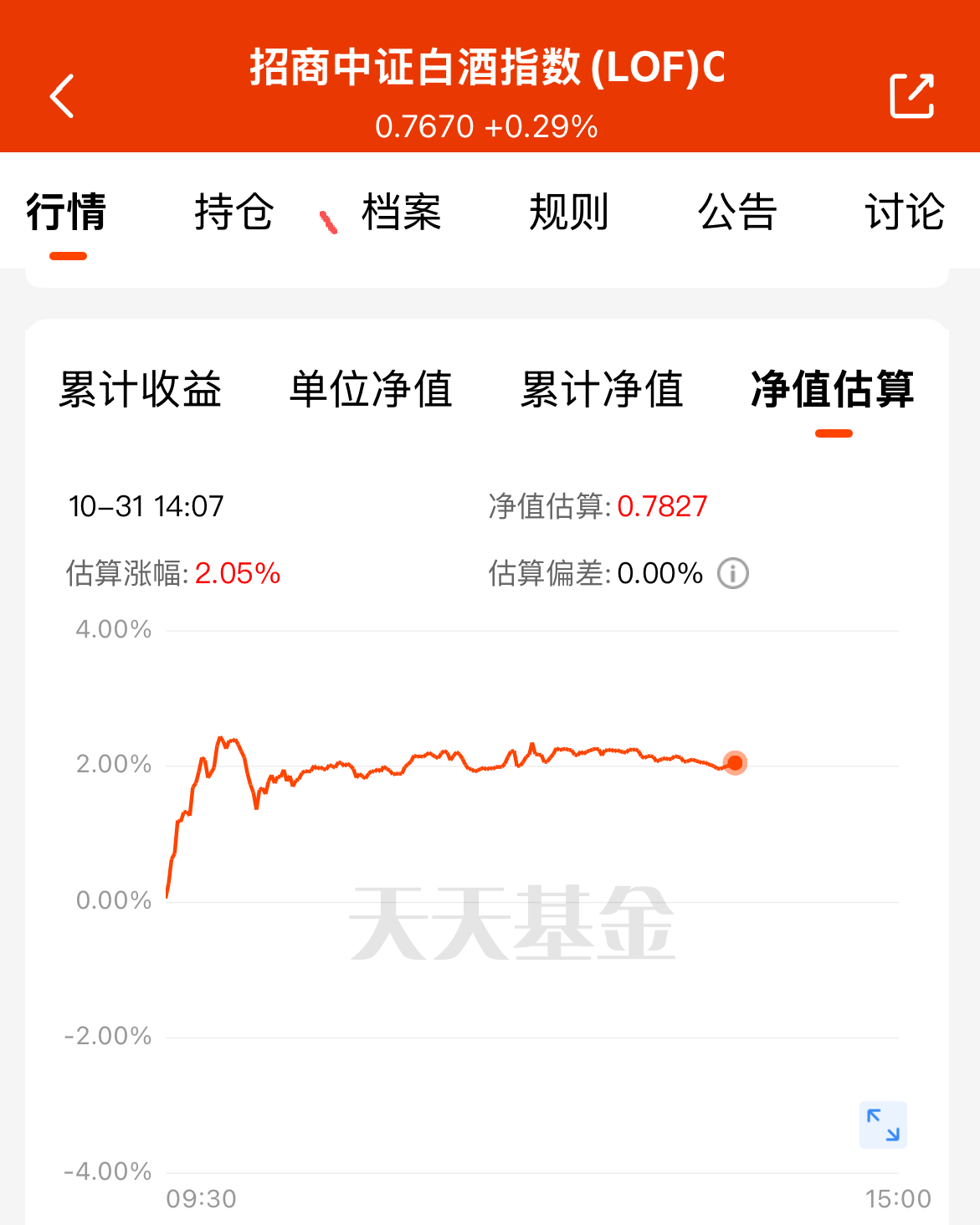 老铁们,科技股涨了这么久,今天市场终于高低切换,白酒这波利空算是砸透了,现在龙头酒企估值跌到近十年地板价,$招商中证白酒指数(LOF)C(OTCFUND|012414)$今天直接涨2%,现在政策松绑,这波补涨继续看好。