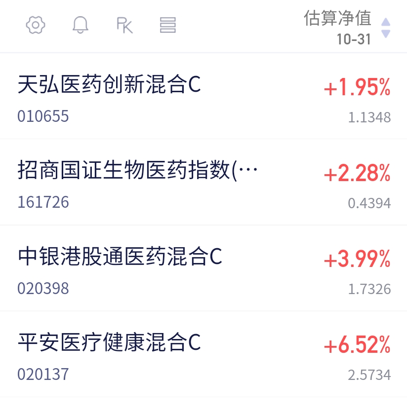 $中银港股通医药混合发起C$ 估值上涨3.99%