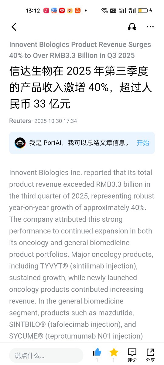 以信达生物为代表的创新药业绩收入很好,激增40%,业绩确定性强