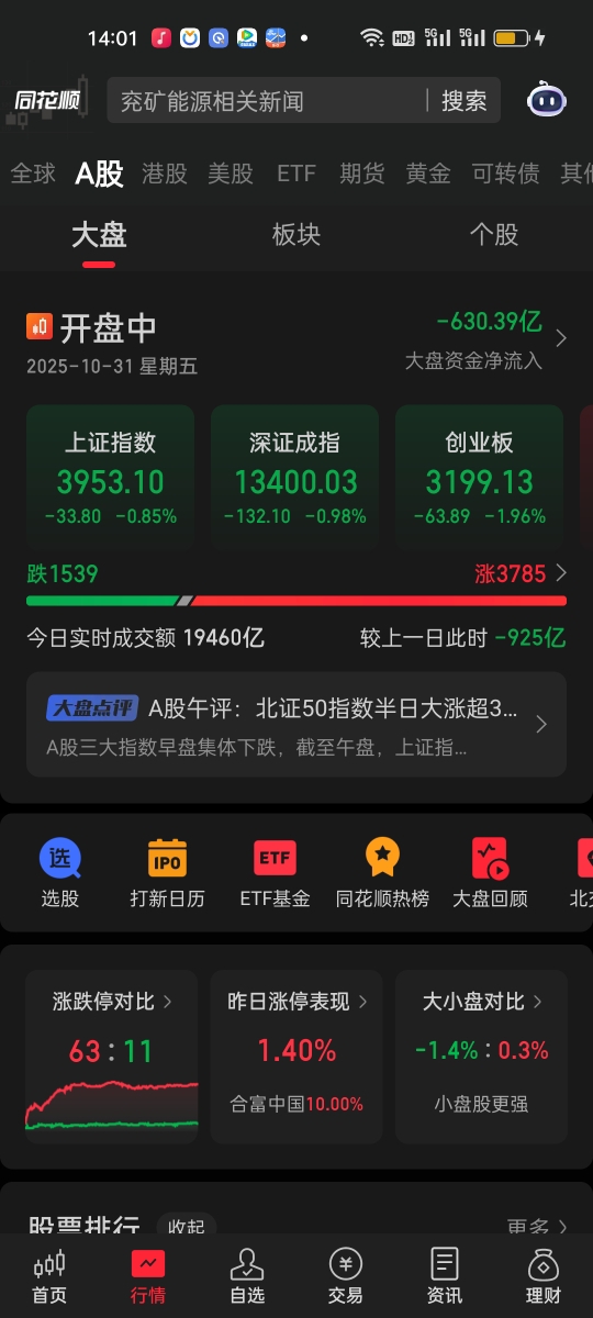 截至今天我发文,如下图所示,三大股指悉数大跌,成交量缩量925亿元。