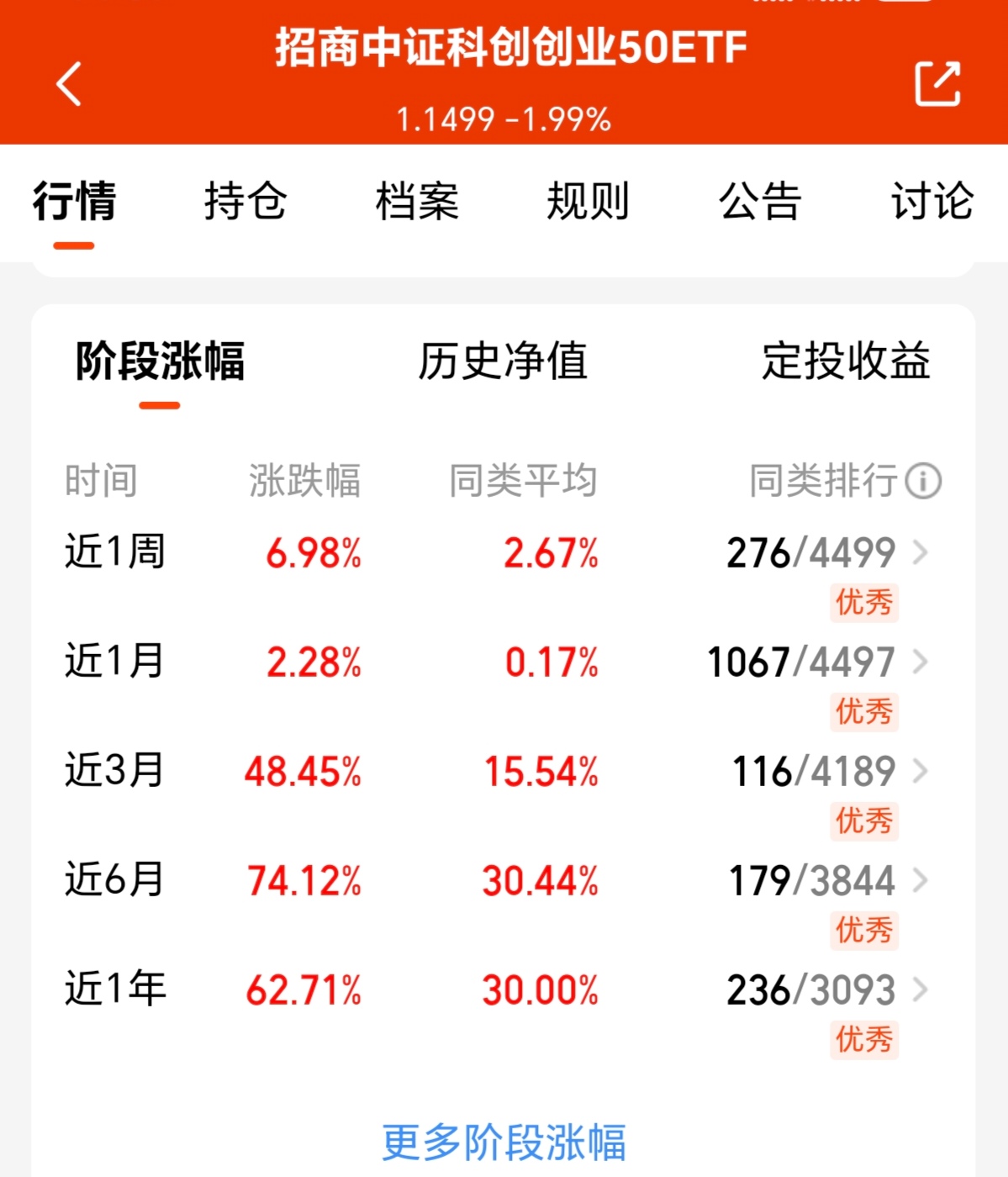 今日市场行情再次震荡,三大指数更是集体下跌,不过近期的涨幅已经不少,短暂调整也是为了更好的上涨,期待一波11月的行情,同时我发现$招商中证科创创业50ETF联接C(OTCFUND|013303)$紧密跟踪科创创业50指数,持仓布局电力、电子等国家大力支持的方向,所以近期收益不断创下新高,近三个月涨幅超78.45%,近6个月涨幅74.12%,各个阶段的业绩都排名优秀,我准备定投起来啦!