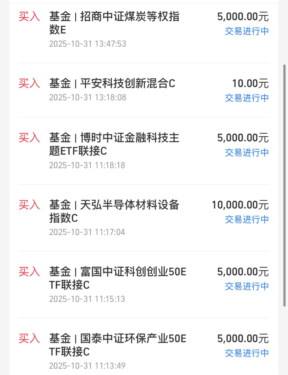5. 金融科技,上车5000,$博时中证金融科技主题ETF联接C$ 昨天的金融科技指数跌了2%,今天探底回升上涨了0.3%,昨天来不及出手,今天我加仓5000