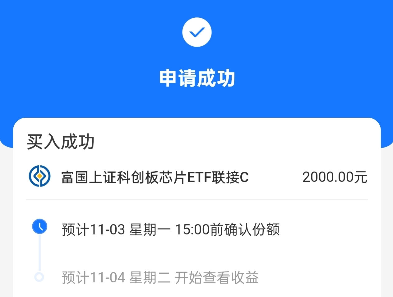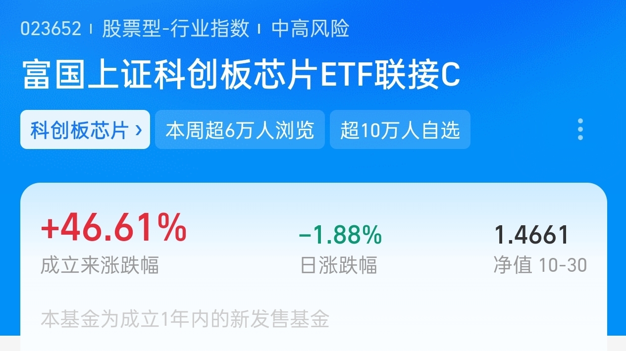 我今天布局了$富国上证科创板芯片ETF联接C$ 。它紧密跟踪科创芯片指数,覆盖半导体全产业链,受益于国产替代与技术升级趋势。它近一年收益率46.61%,行业景气度高,它采用ETF联接模式,运作透明度高,费率较主动型基金更具竞争力。半导体作为战略核心领域,长期受政策扶持与国产化需求驱动,布局价值清晰。借今日市场回调,我也是布局上车了,希望能享受到芯片产业成长红利。