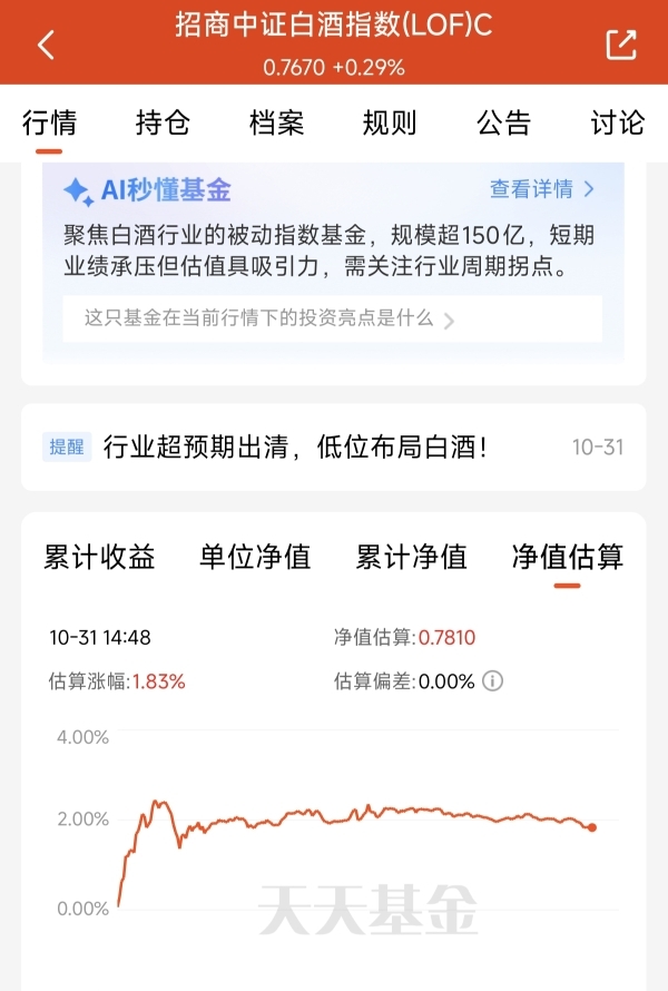 $招商中证白酒指数(LOF)C$ 这只聚焦白酒的指数基金。紧跟中证白酒指数。长期来的表现一直不错。持仓全部都是白酒板块的龙头优质标的,今天估值上涨了1.83%。爆发力的表现也是非常不错的。我坚定看好未来的修复表现。#AI应用类股票大涨:短剧概念逆势走强#