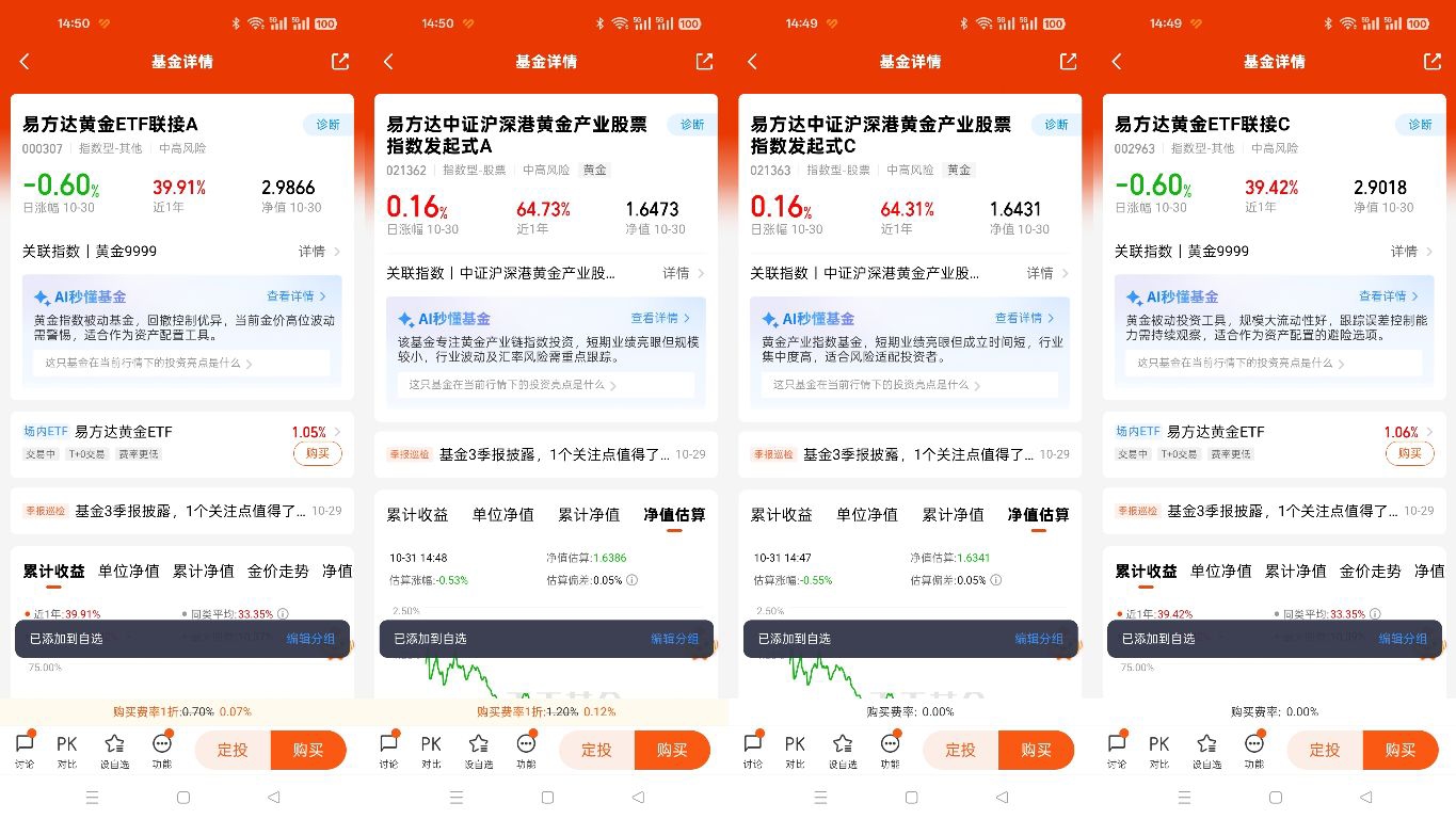 @易方达基金 $易方达黄金ETF联接A$ $易方达中证沪深港黄金产业股票指数发起式A$