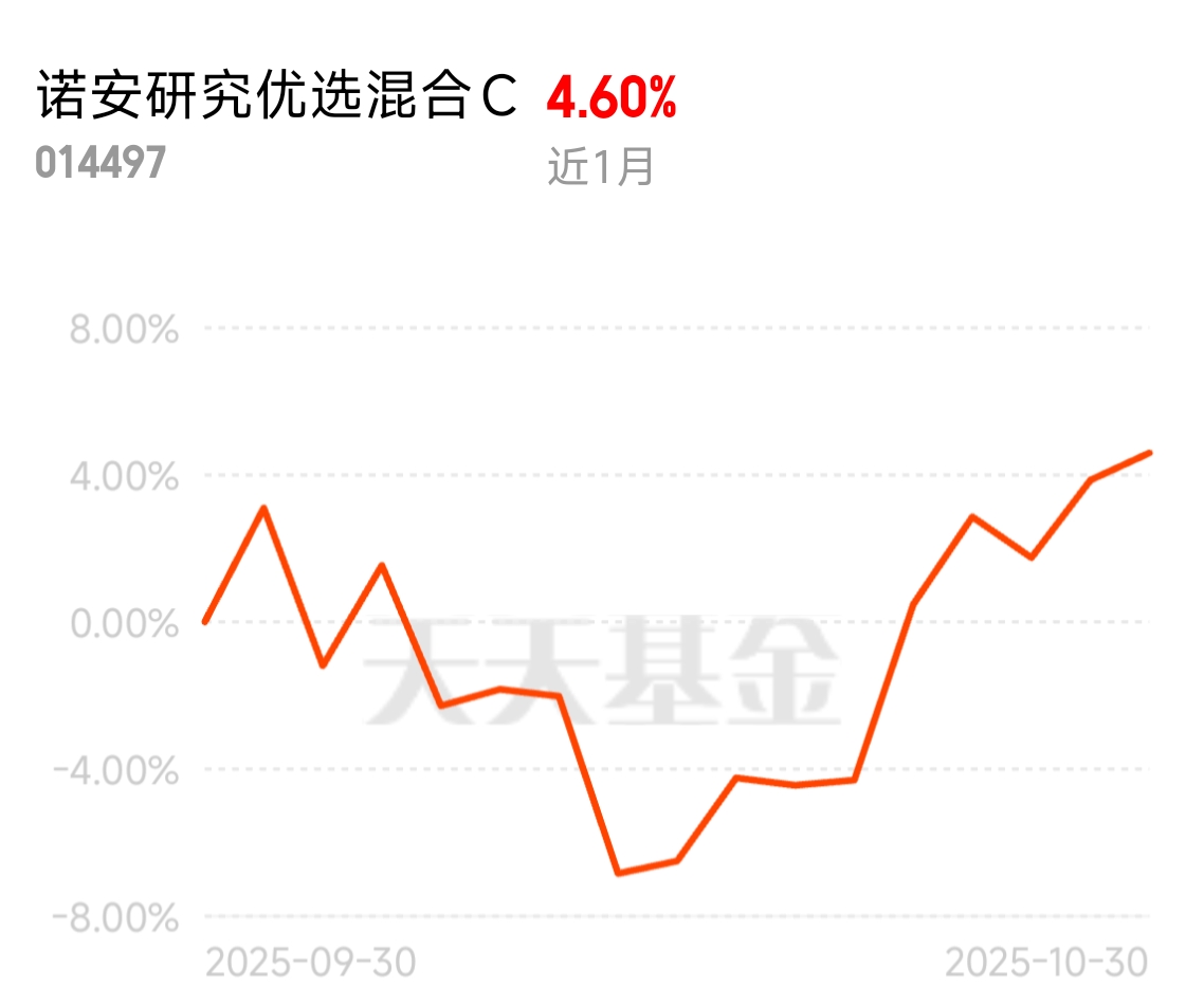 观察了一周时间,诺安家的小号$诺安研究优选混合C$弹性大,业绩好,还是可以一试