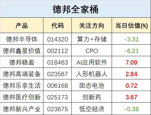 德邦全家桶今日估值。ai应用基稳盈破7$银河创新成长混合C$ $中航机遇领航混合发起C$ $德邦半导体产业混合发起式C$