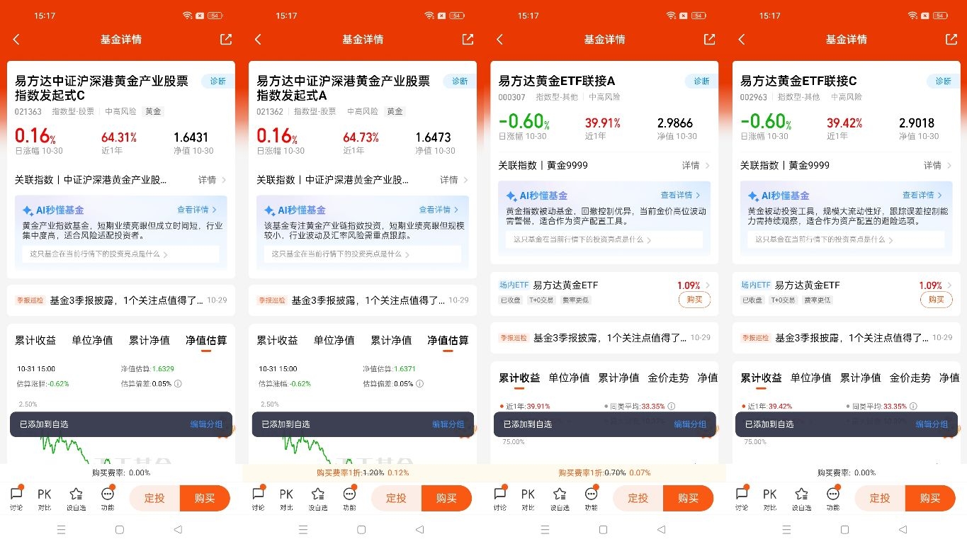 @易方达基金 $易方达黄金ETF联接A$ $易方达中证沪深港黄金产业股票指数发起式A$