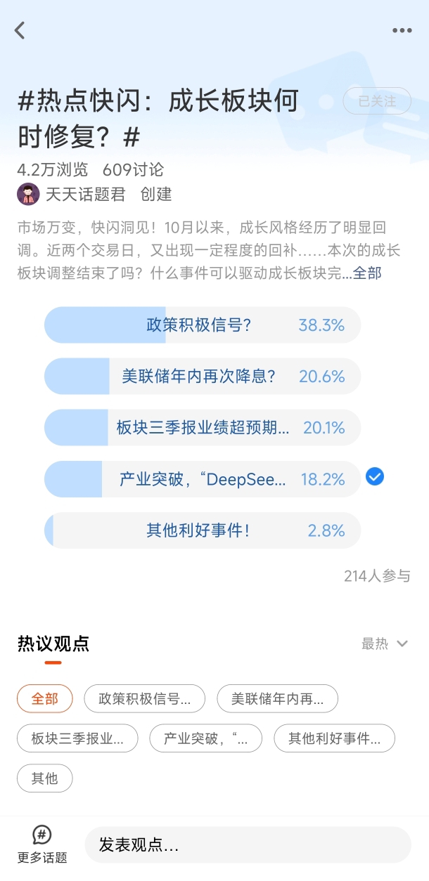 我在#热点快闪:成长板块何时修复?# 选择了“产业突破,“DeepSeek”时刻再现?”