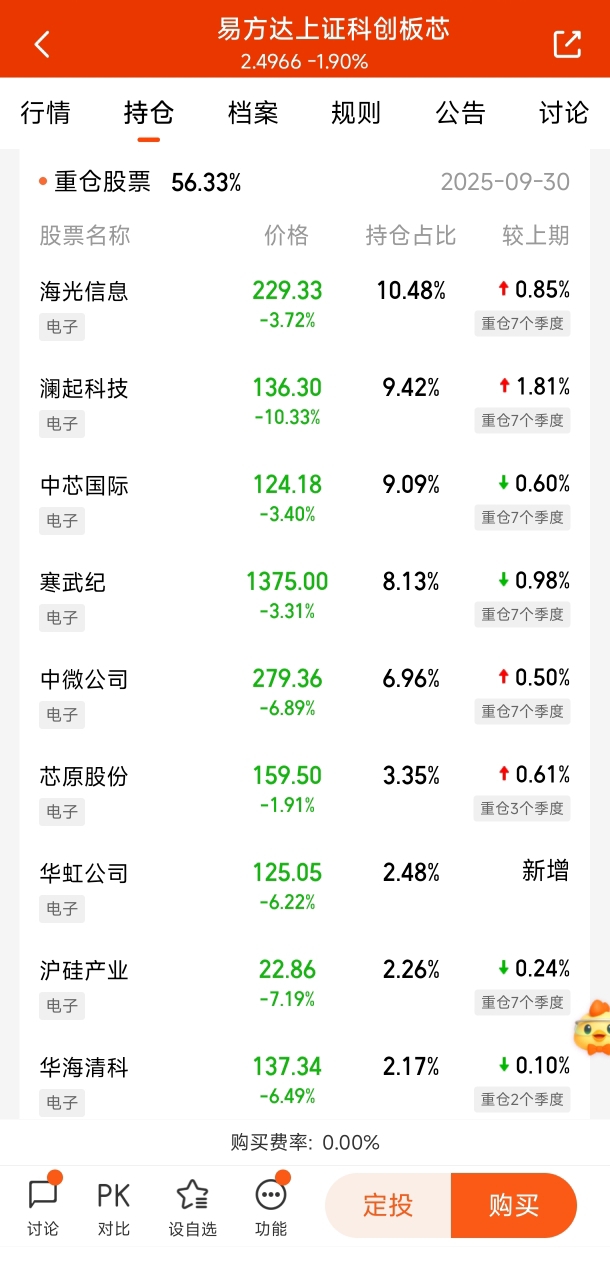 精准定位芯片产业链。该基金紧密跟踪上证科创板芯片指数,投资范围覆盖芯片设计、制造、设备、材料等全产业链环节。前十大重仓股包括海光信息、澜起科技、中芯国际、寒武纪等芯片龙头,全面覆盖国产芯片核心资产。