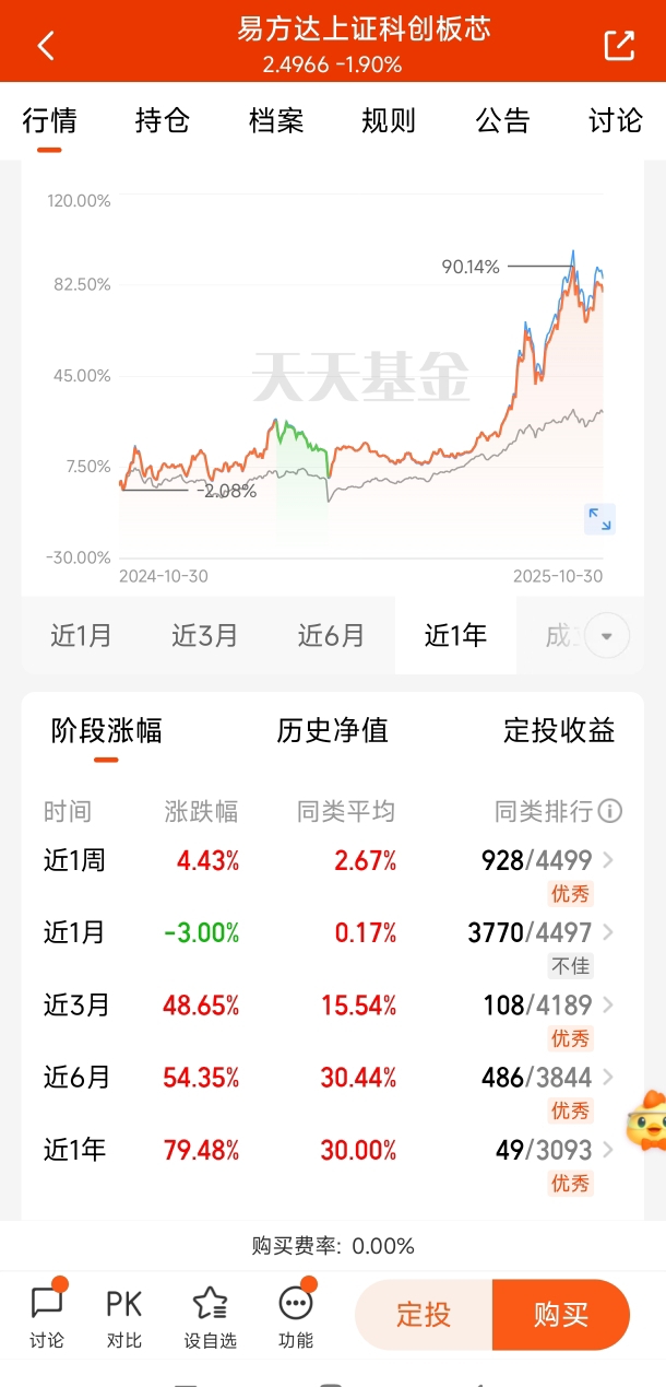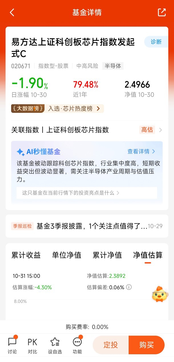 对于普通投资者而言,借道专业基金参与芯片投资是更明智的选择。易方达上证科创板芯片指数发起式C(代码:020671)作为聚焦芯片赛道的指数基金,具备多重优势。