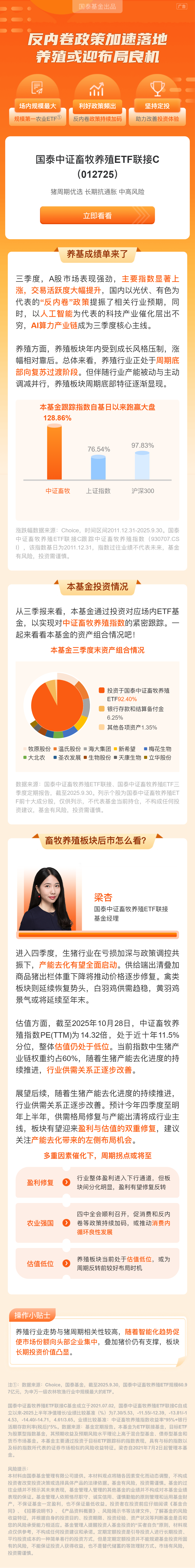$国泰中证畜牧养殖ETF联接A(OTCFUND|012724)$$国泰中证畜牧养殖ETF联接C(OTCFUND|012725)$$国泰中证畜牧养殖ETF联接E(OTCFUND|022475)$