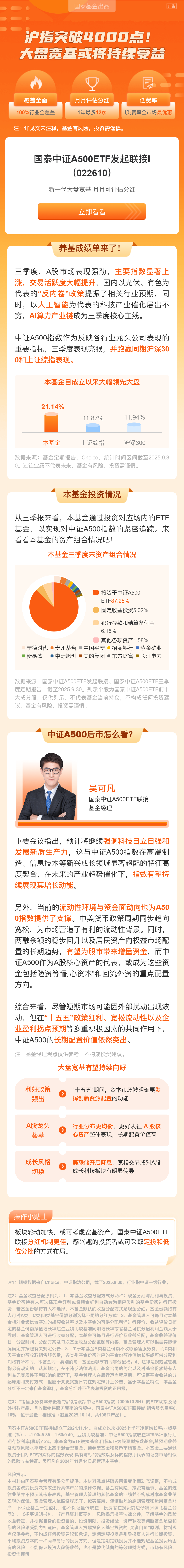 $国泰中证A500ETF发起联接A(OTCFUND|022448)$$国泰中证A500ETF发起联接C(OTCFUND|022449)$$国泰中证A500ETF发起联接I(OTCFUND|022610)$