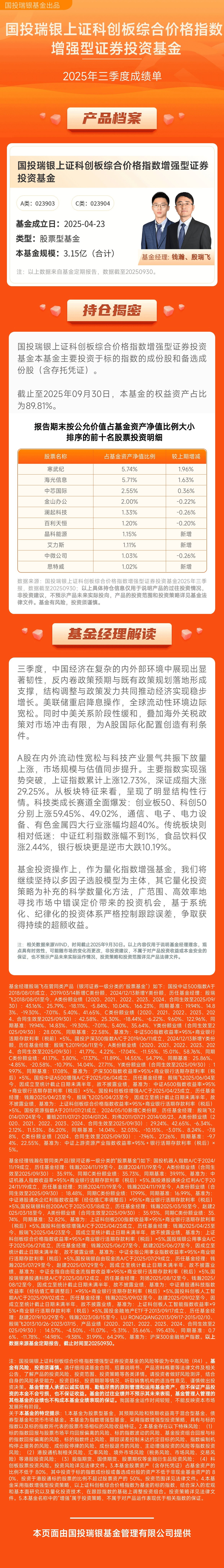 三季报解读:国投瑞银上证科创板综合价格指数增强