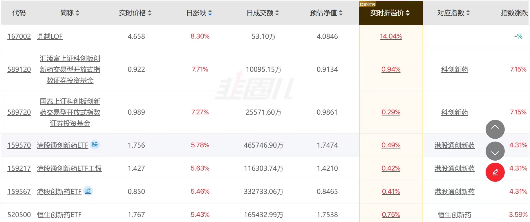 今天创新药借板块东风强势霸榜,流动性与溢价控制均衡;跌幅榜通信ETF成重灾区,量大溢价高却跟跌不跟涨。