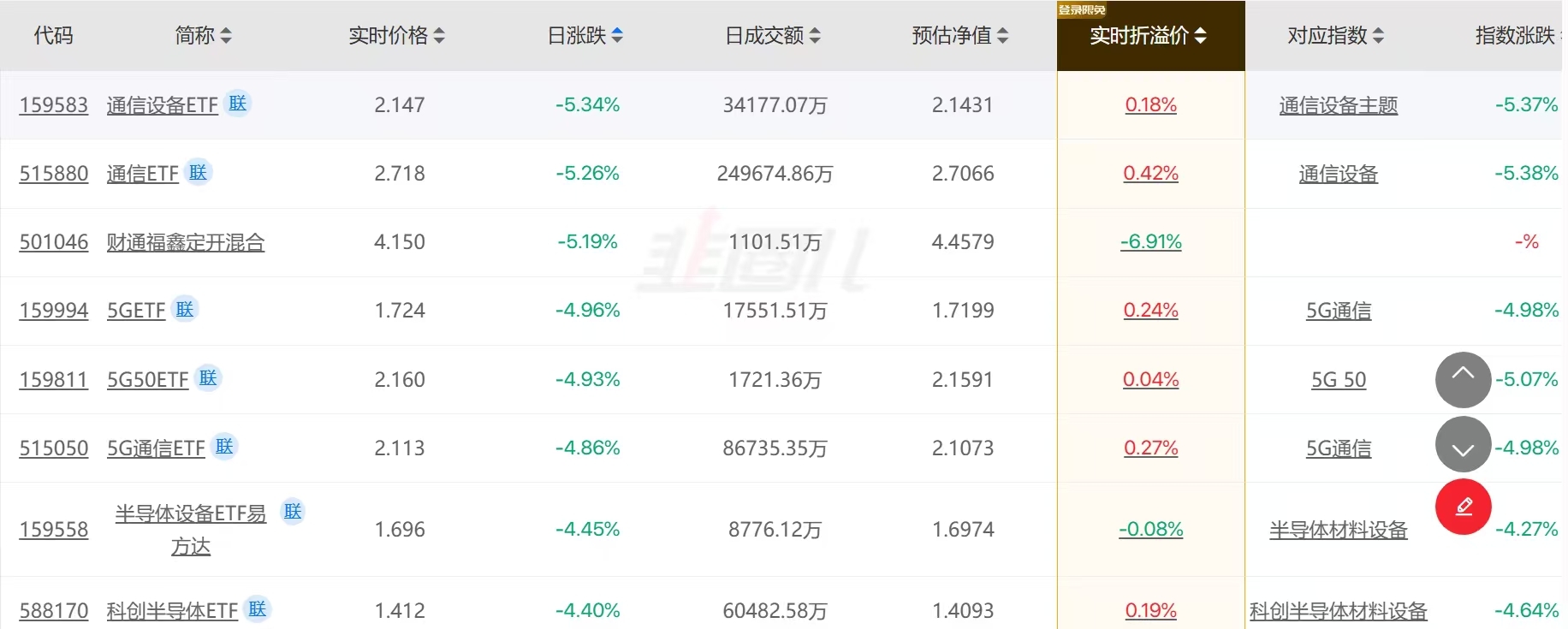 【跌幅榜】通信ETF