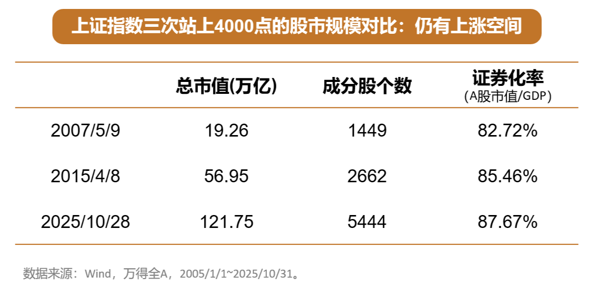 2025年10月28日,时隔10年,上证指数再次触及4000点。这是A股历史上第三次站上这个关键点位——上两次分别是2007年5月9日和2015年4月8日。
