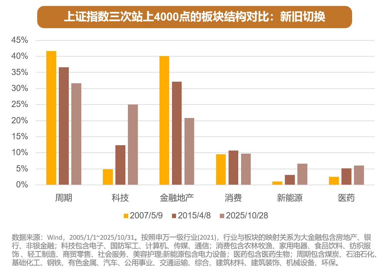 三次4000点,A股的行业结构已经彻底变了——从传统经济挑大梁,变成了新质生产力当主角。