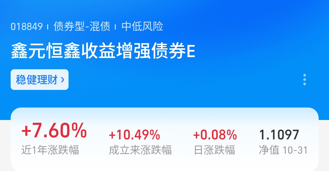 $鑫元恒鑫收益增强债券型发起式E$ 近一年稳稳涨了7.6%,今天还收了8个蛋