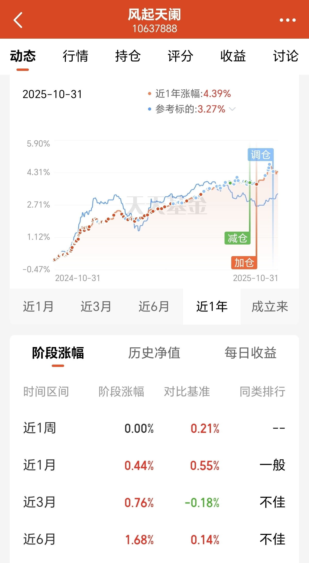 债基组合-风起天阑净值更新,收蛋6个,这已经是连续10个月正收益了。近1年收益4.39%,参考标的3.27%,超额收益不少。