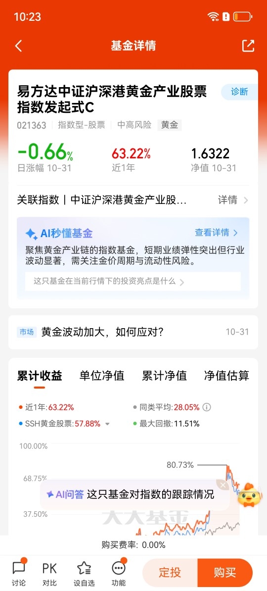 1、成本效率优势。C类份额免申购费,持有满30天免赎回费,年化费率仅0.67%(管理费0.15%+托管费0.05%+销售服务费0.47%),显著低于实物黄金的保管成本。