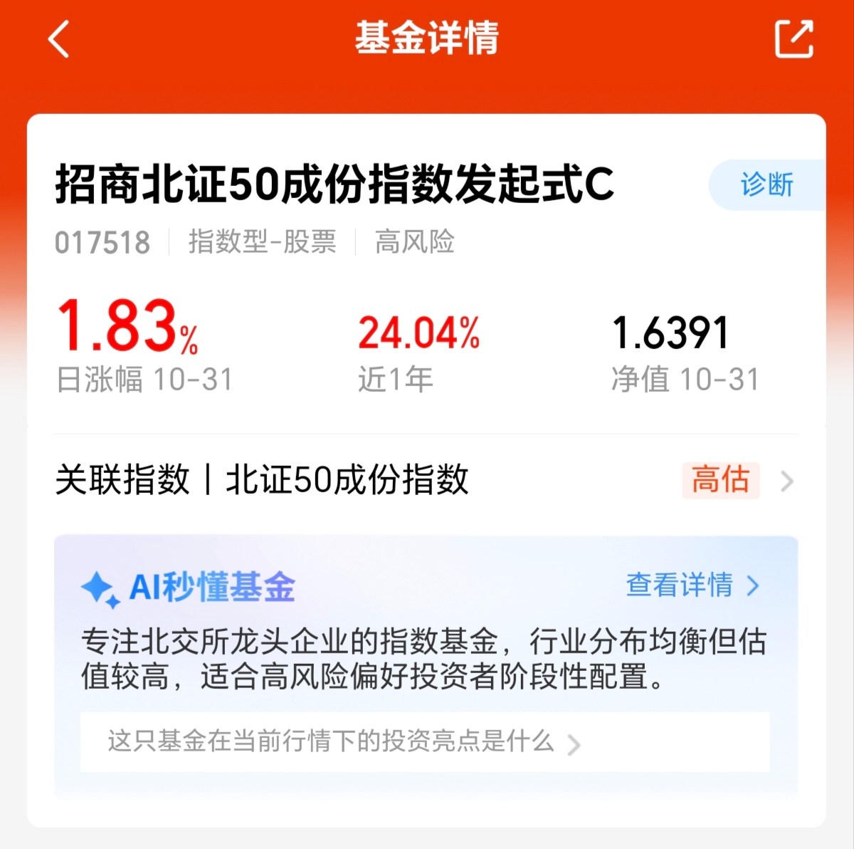 近期大盘在冲上4000点之后,整体呈现震荡格局,但当下A股整体气氛在变好,资金也在寻找“新故事”,其中主板、科创板轮流炒了一圈,但北交所自今年9月中旬以来,一直在处于下跌,看其近期的走势,也该轮到它表现了!所以我果断加仓$招商北证50成份指数发起式C(OTCFUND|017518)$聚焦北交所龙头企业,近一个月涨幅高达7.08%,远超同类平均0.16%,期待接下来的反弹力量啦!