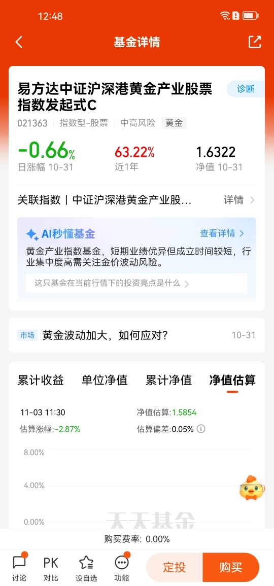 用易方达黄金ETF联接C,就像养了只电子宠物黄金兽——每天看看净值,偶尔喂点定投,剩下的交给时间。毕竟,黄金的浪漫在于:它不会让你一夜暴富,但能让你在风雨飘摇时,心里总有个压舱石。@易方达基金