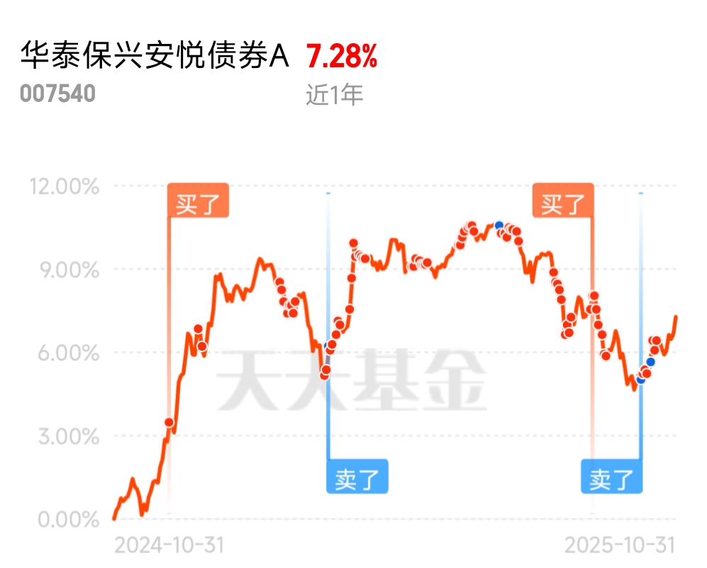 市场波动大,还是债基稳,放这里不求别的,每天稳稳小收几个蛋就行$华泰保兴安悦债券