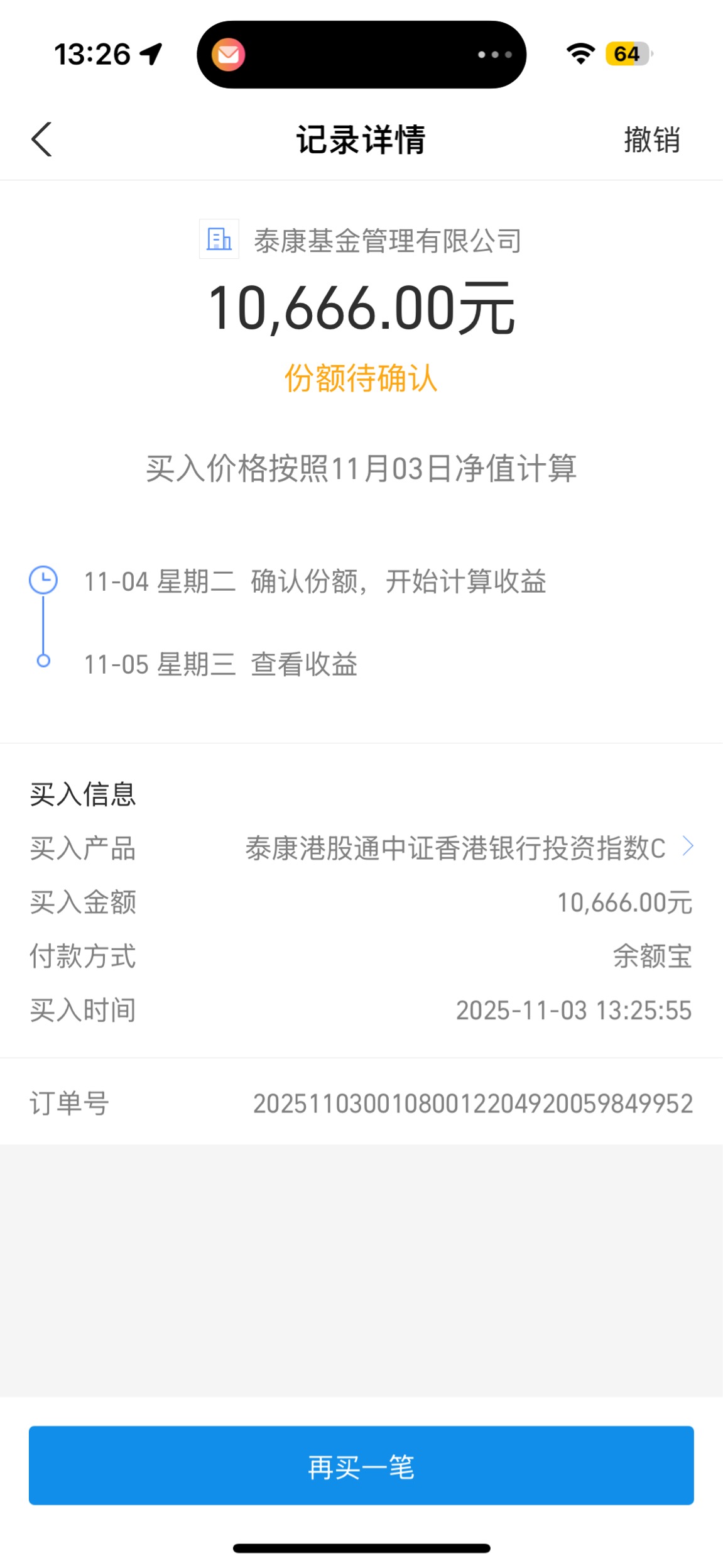 最近市场波动加大,科技股起伏剧烈,资金开始转向银行股避险。今天继续加仓10666元,$泰康香港银行指数C$ 近期逆势上涨,表现稳健。它主要投资港股和A股银行,其中港股银行股弹性更大,反弹更猛。随着美联储降息预期升温,资金正加速流入金融板块,银行股有望在四季度跑赢大盘。考虑到当前估值较低、股息率高,我决定继续加仓,把握这波防御性机会。期待吃肉。