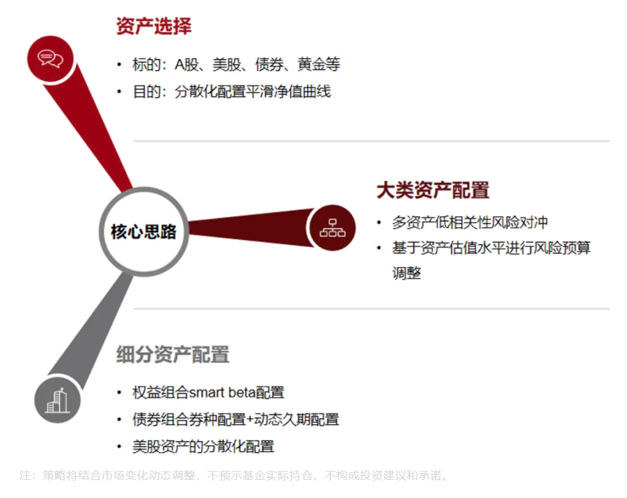 重点跟踪A股、美股、黄金、利率债等大类资产的估值水平,动态调整风险预算,充分利用多资产低相关性的特征,通过多元资产的风险对冲实现组合回撤的控制目标。