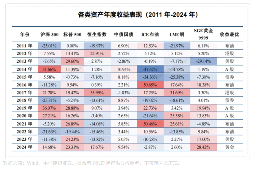 从各类资产年度收益表现来看,不同的市场环境下均有不同资产能够取得较好的正收益。因此,通过在不同资产类别之间进行轮动与配置,有助于捕捉不同市场环境下的机会。