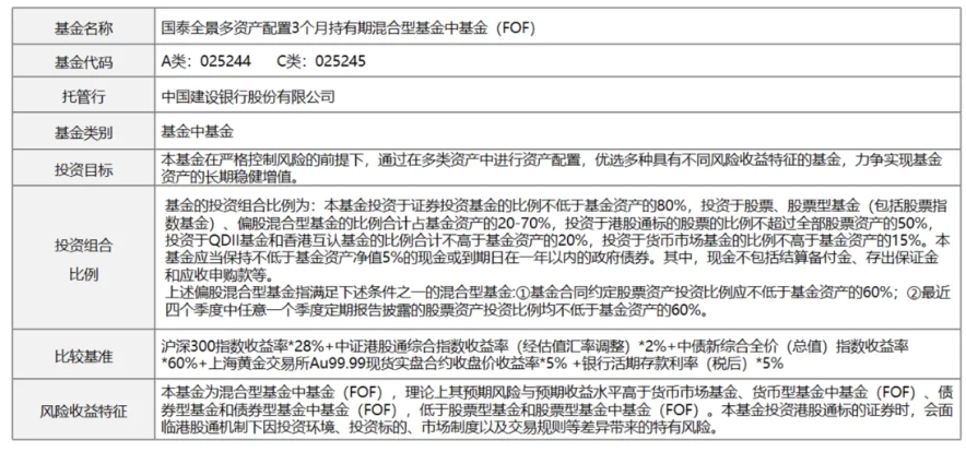 $国泰全景多资产配置3个月持有混合(FOF)C(OTCFUND|025245)$