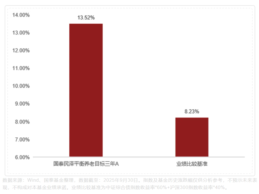 以拟任基金经理徐皓目前在管的代表产品国泰民泽平衡养老目标三年持有期FOF为例,截至2025年9月30日,近一年收益达13.52%,较业绩基准取得5.29%的超额收益。