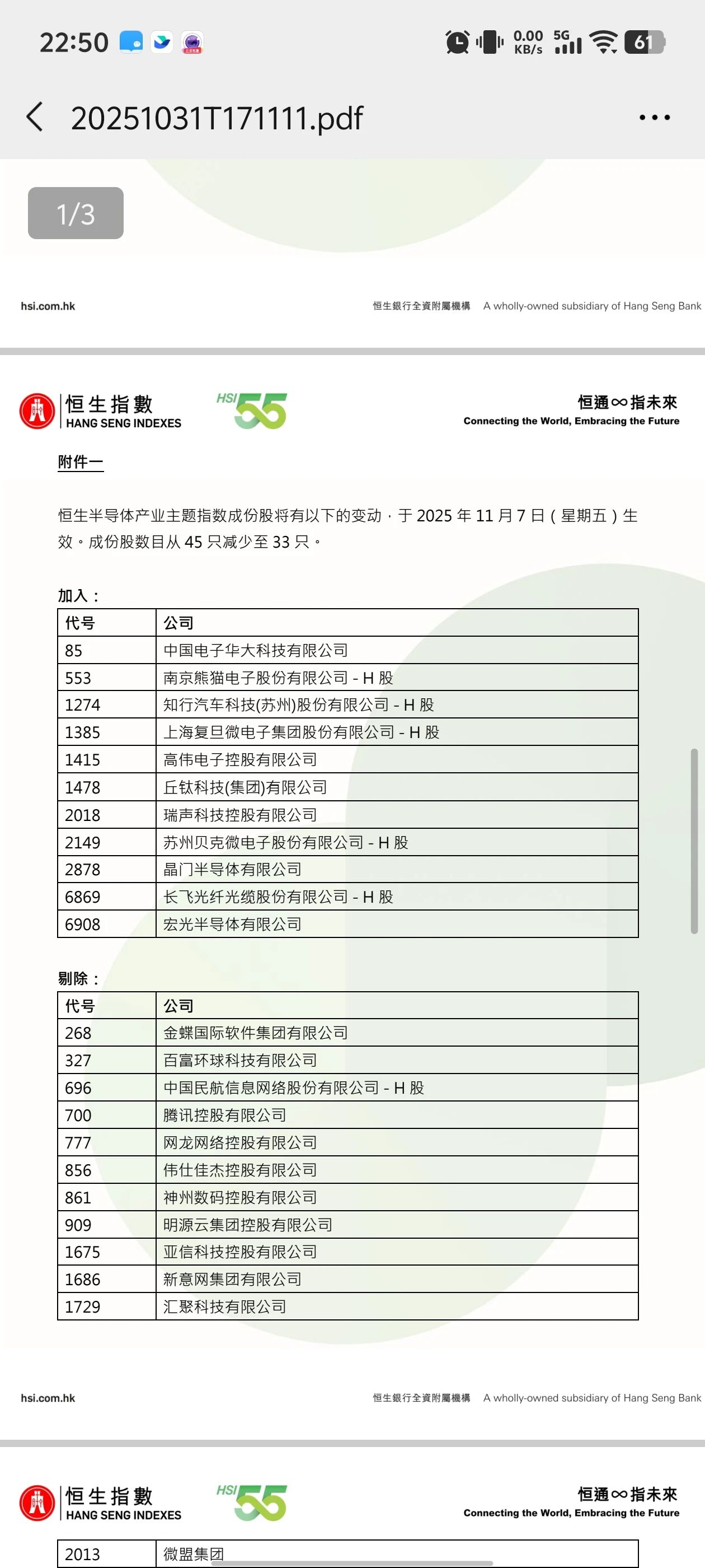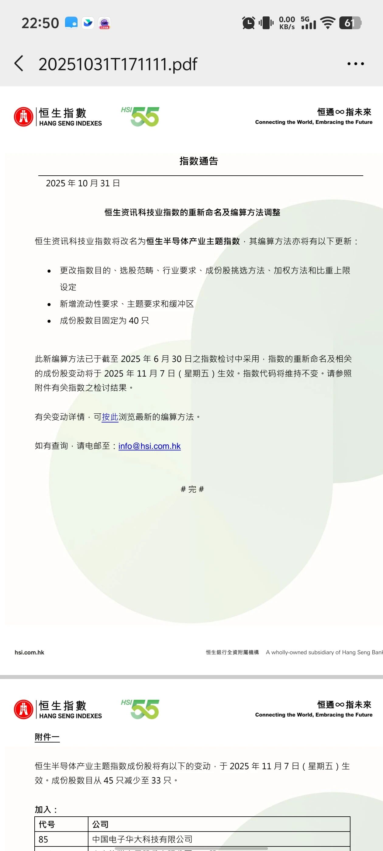 看到恒生指数公司发的一则公告,将原来的恒生资讯科技指数改成了恒生半导体产业指数。