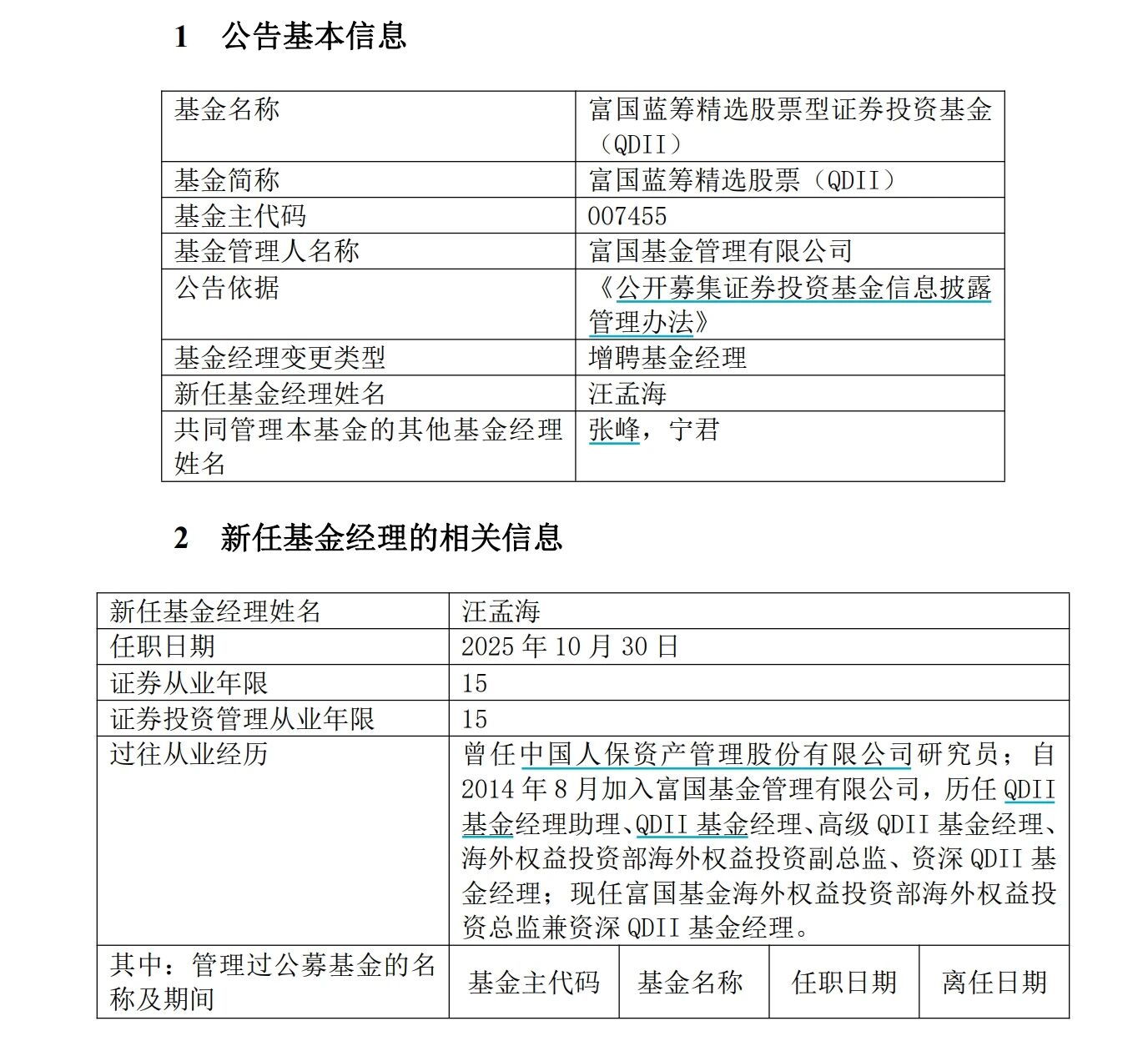 富国蓝筹精选(QD基金)以投资港股和美股的中国股票为主,已经增聘了汪孟海。