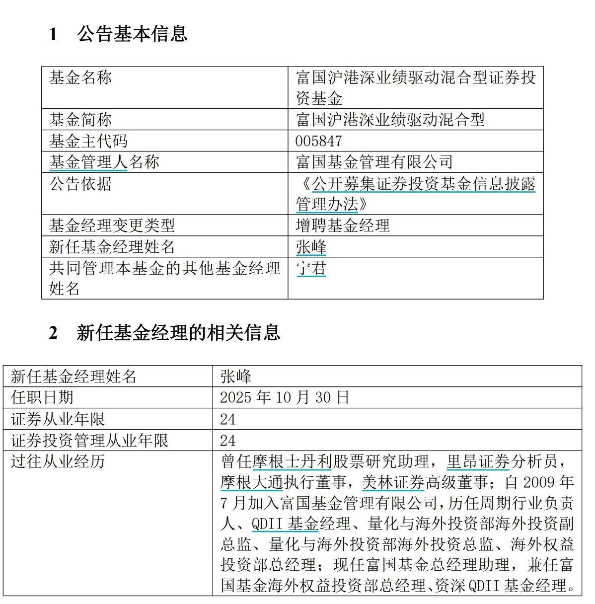 富国沪港深业绩驱动以投资A股和港股的股票为主,已经增聘了张峰。