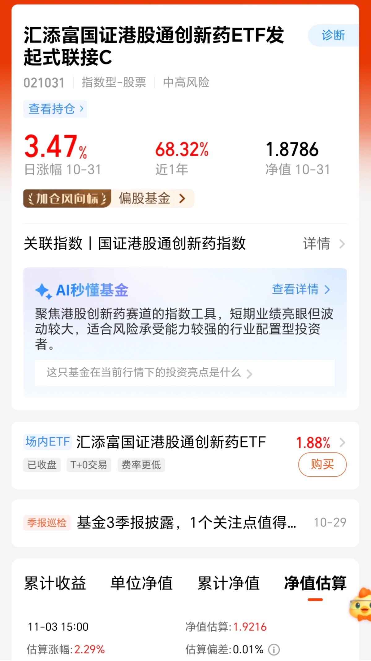今日A股三大指数低开高走,港股也迎来集体收涨行情,整体来看市场再次重回暖意,整体趋势越发向好,同时经历过深度调整后的港股创新药,也是迎来了2连涨行情,而当下资金也在持续不断流入,看来这波创新药行情又要回来了!所以在操作上,我会更倾向于长期持有的$汇添富国证港股通创新药ETF发起式联接C(OTCFUND|021031)$持仓聚焦于港股创新药龙头企业,重点布局于药明生物、百济神州、 三生制药、康方生物等众多具有代表性的创新药企业!