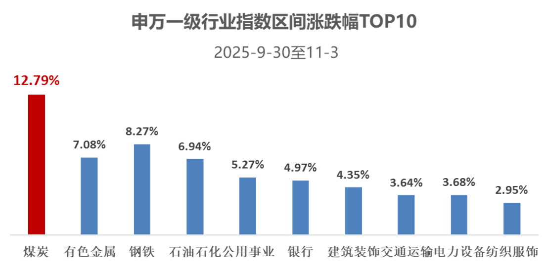 大家好啊!国庆节后科技产业链、新能源、黄金及有色板块表现不俗,交错演进,颇有你方唱罢我登场的气势,上证指数也在这一轮行情中重返了4000点。这其中作为“旧动能”重头戏的煤炭板块,虽然没有夺目的表现,但就那么一直温温吞吞地上行,9月底以来涨幅也累计达到了近13%!位列申万一级行业涨幅TOP1!