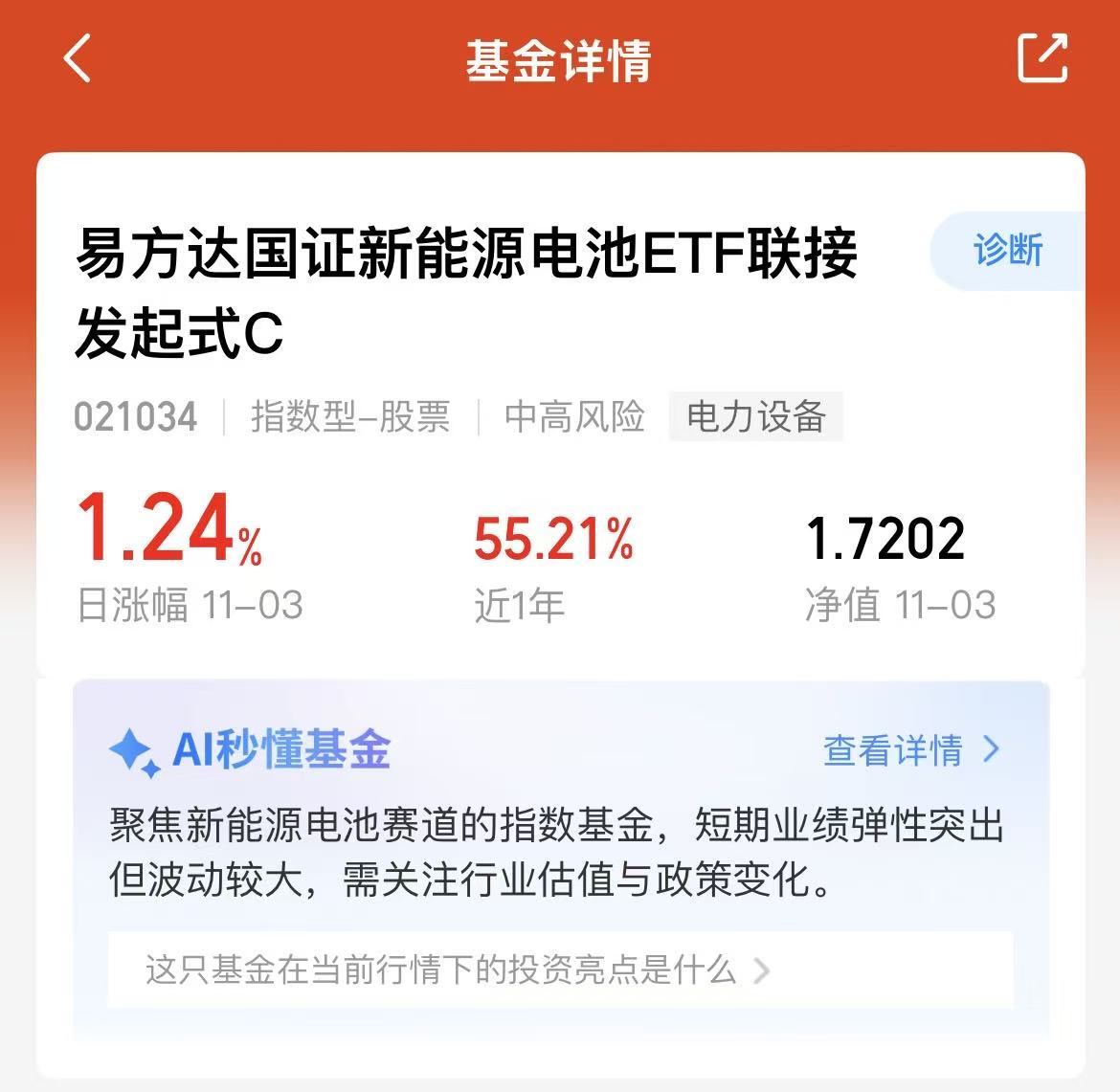 $万家国证新能源车电池指数发起式C(OTCFUND|018380)$也是不错的$天弘国证新能源电池指数发起C(OTCFUND|021964)$年化收益率48.55%#11月基金投资策略#