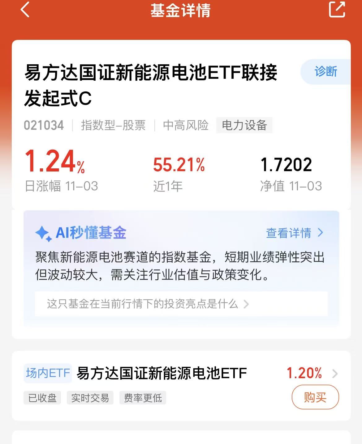 $工银国证新能源车电池ETF发起式联接C(OTCFUND|015874)$也是不错的$天弘国证新能源电池指数发起A(OTCFUND|021963)$今天也是吃肉了#11月基金投资策略##10月投资总结:我的收益如何了?#